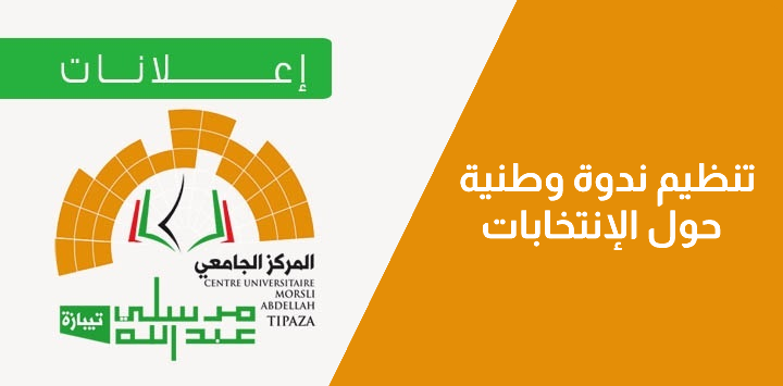 يعلن المركز الجامعي مرسلي عبد الله عن تنظيم ندوة وطنية حول دور النظام الانتخابي في تدعيم الديمقراطية التشاركية وبناء الجزائر الجديدة, ودلك يوم 02 ديسمبر 2021 وبالتالي تغيير آجال ارسال المشاركات كما هو مبين في مطوية الندوة