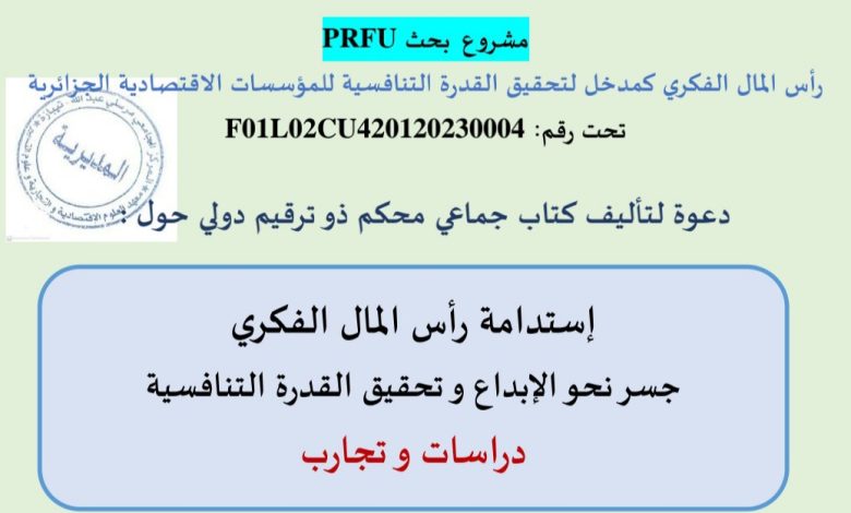 الرئيسية/إعلانات/أساتذة/دعوة لتأليف كتاب جماعي حول إستدامة رأس المال الفكري جسر نحو الإبداع وتحقيق القدرة التنافسية أساتذةإعلاناتإعلانات هامة دعوة لتأليف كتاب جماعي حول إستدامة رأس المال الفكري جسر نحو الإبداع وتحقيق القدرة التنافسية 22 سبتمبر 2024 1٬351 أقل من دقيقة 22 سبتمبر 2024 1٬351 أقل من دقيقة اظهر المزيد شاركها فيسبوك تويتر لينكدإن مشاركة عبر البريد طباعة