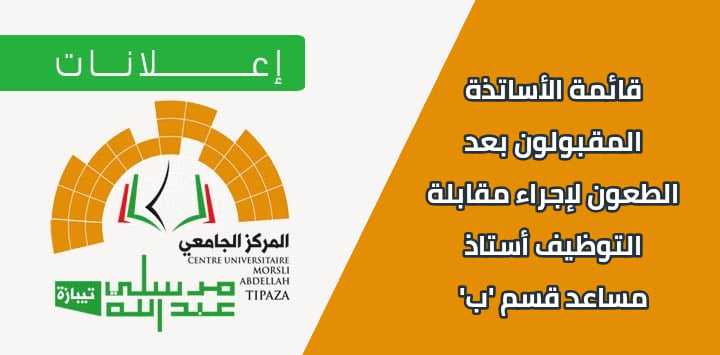 قائمة المقبولين بعد الطعون لإجراء مقابلة التوظيف أستاذ مساعد قسم ب :