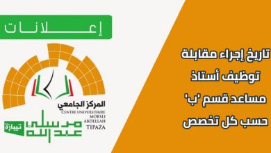 يمكنكم الالتحاق بالمركز الجامعي لاجراء مقابلة التوظيف أستاذ مساعد قسم ب حسب كل تخصص كما هو مبين في الجدول التالي…