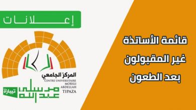 قائمة الأساتذة غير المقبولون بعد الطعون لأجراء مقابلة توظيف أستاذ مساعد قسم ب :