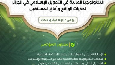 مؤتمر تيبازة الدولي للمالية الإسلامية تحت عنوان : التكنولوجيا المالية في الجزائر تحديات الواقع وآفاق المستقبل