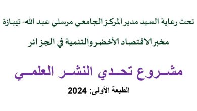 أطلق مخبر الاقتصاد الأخضر والتنمية في الجزائر، برعاية وإشراف السيد مدير المركز الجامعي تيبازة، مشروع مبادرة النشر العلمي .بهدف تشجيع…