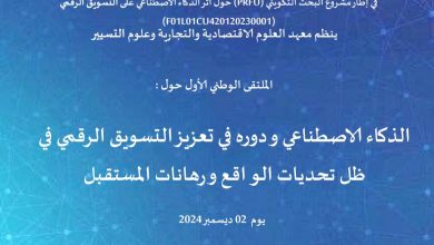 الملتقى الوطني حول الذكاء الاصطناعي ودوره في تعزيز التسويق الرقمي في ظل تحديات الواقع ورهانات المستقبل