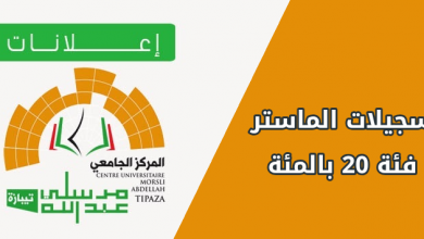 فتح تسجيلات الماستر بالنسبة لفئة 20% (دفعة 2021-2022)