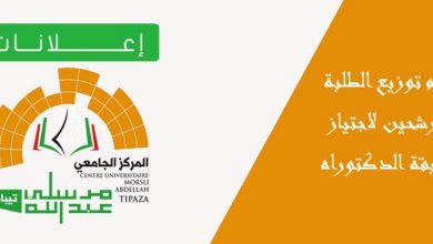 نعلم جميع الطلبة المحولين من الجامعات الأخرى الى المركزالجامعي مرسلي عبد الله بتيبازة السنة الثانية والثالثة ليسانس أنه تم تسوية…
