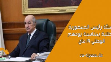 تهنئة رئيس الجمهورية للطلبة بمناسبة يومهم الوطني 19 ماي